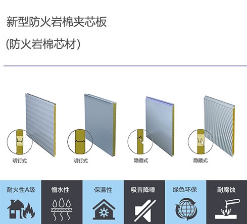 高防火的粘結劑,將優質巖棉與金屬板粘結、復合而成美觀、平整、剛韌的建筑板材