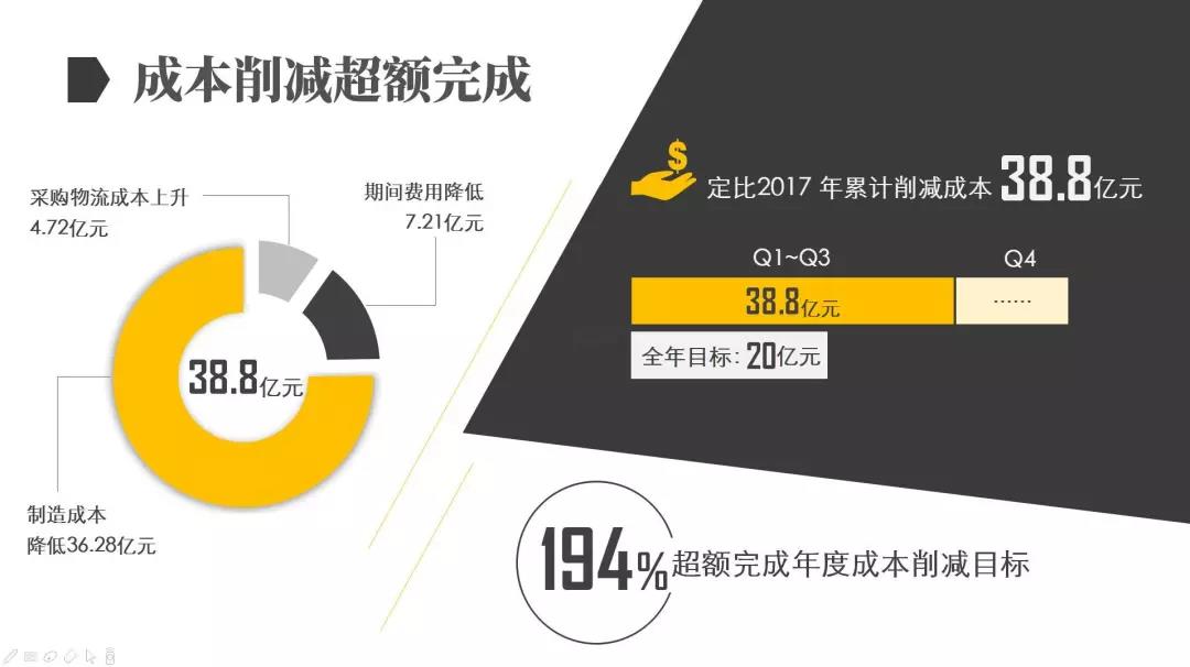 今年前三季度,寶鋼股份累計完成商品坯材銷量3511.6萬噸;累計成本削減38.8億元,超額完成年度目標;累計實現(xiàn)經(jīng)營活動凈現(xiàn)金流367.5億元,同比增長179.9%;三季度末,資產(chǎn)負債率降為47.6%。