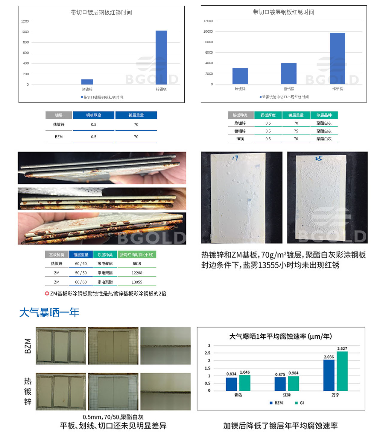 產品特點(耐蝕性:切口和折彎后耐蝕性是熱鍍基板彩涂2~3倍)